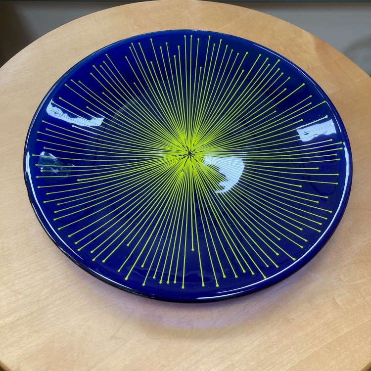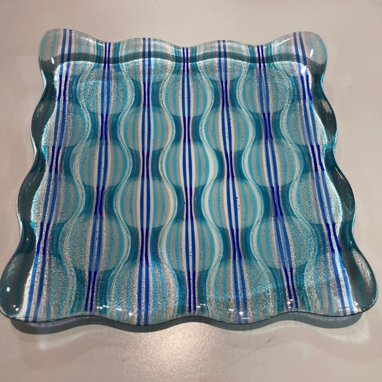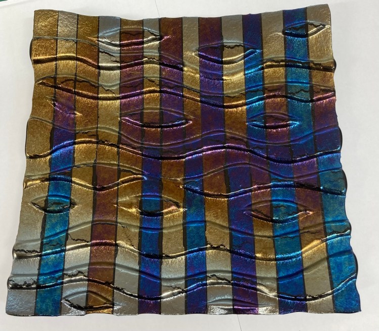 After retirement from the world of accounting and computers in 2018, Roy attended a taster course on glass fusing at West Dean College and got the bug. A summer school course followed and then creation of a workspace in the garden and investment in the tools of the trade. Roy’s love of geometric forms and the wonders of the natural world and beyond are reflected in his work. Every day is a new adventure.